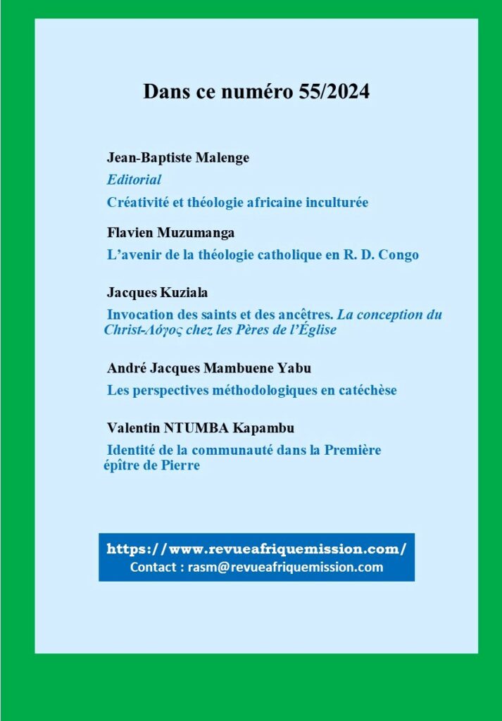 Revue Africaine des Sciences de la Mission - Université De Mazenod, Kinshasa - RD Congo rasm@revueafriquemission.com